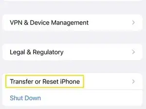 Прокрутите вниз в следующем меню. Нажмите параметр Сброс. В зависимости от версии iOS на вашем телефоне он может называться Передача или сброс iPhone.