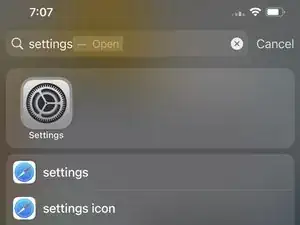 Если вы не уверены, где находится приложение «Настройки», проведите влево до самого конца и используйте функцию поиска, чтобы найти его.