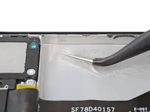 Используйте пинцет, чтобы удалить весь старый клей из посадочного места аккумулятора.