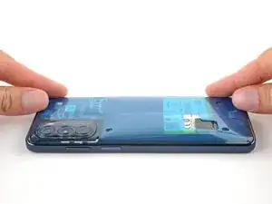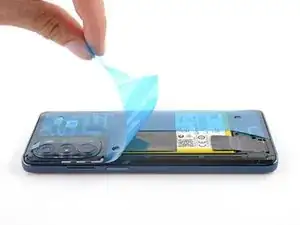 Отделите и снимите белую защитную подложку с новой клейкой прокладки задней панели.