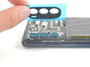 Отделите и снимите синюю защитную пленку с рамки камеры.