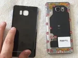 Прогрейте феном для волос или термофеном края задней крышки Note 5, чтобы размягчить клей.