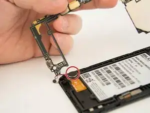 Осторожно поднимите материнскую плату из телефона, чтобы получить доступ к контактам пайки микрофона.
