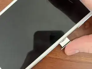 Используйте инструмент для извлечения SIM-карты, биту для SIM-карты или простой скрепкой. Вставьте его в отверстие на левой стороне SIM-лотка. Приложите давление, пока лоток не откроется. Схватите лоток пальцами и аккуратно извлеките его.