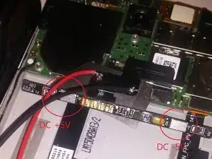 Оригинальный аккумулятор был точечно сварен к каждому контакту в красном круге, но аккумулятор был изначально снят, так как он считался неисправным.
