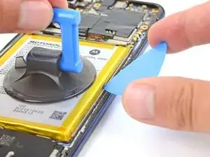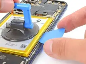 Потяните за присоску вверх сильной, равномерной силой, чтобы отделить аккумулятор от корпуса.