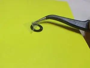 Используя пинцет, удалите одну из сторон пленки, покрывающей защитное стекло. Убедитесь, что не трогаете его пальцами: отпечатки пальцев будет трудно удалить с защитного стекла, когда все будет собрано.
