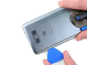 Нагрев задней поверхности G6 помогает размягчить клей, фиксирующий заднюю панель, что облегчает её открытие.