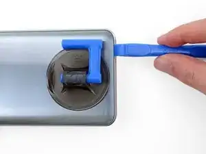 Как только весь клей будет разрезан, используйте кончик разделяющего инструмента, чтобы поддеть заднюю стеклянную панель.