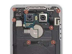 Используйте фен, термофен или подготовьте разогревающий пакет, поднесите его к нижнему краю G6 примерно на минуту, чтобы размягчить клей под задней стеклянной панелью.