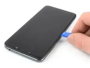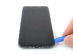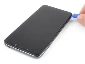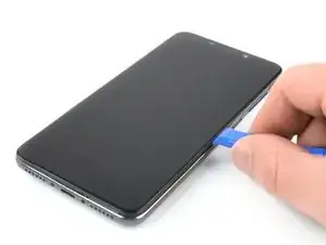 Проведите инструментом вдоль правого края Pocophone F1, чтобы освободить пластиковые защёлки.