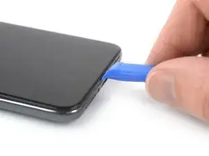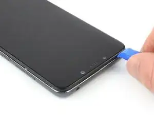 Проведите монтажным инструментом вдоль левого края телефона, чтобы освободить оставшиеся пластиковые защёлки.