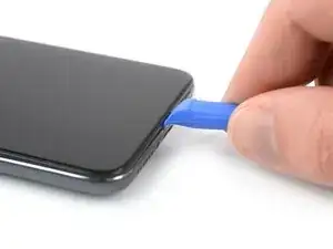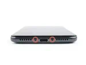 Удалите два винта Torx T3 длиной 2,7 мм с нижнего края телефона.