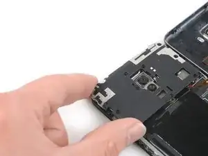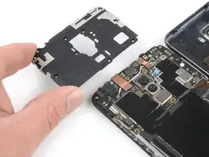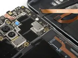 Постарайтесь пока не снимать заднюю крышку полностью, гибкий кабель датчика отпечатков пальцев всё ещё подключён к плате.
