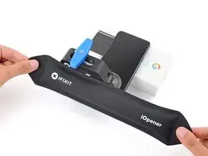 Приложите нагретый iOpener к верхнему краю экрана на две минуты.