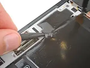 Вставьте наконечник лопатки под верхний правый угол нажимного разъема экрана.