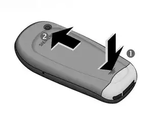 Поддерживая нажатие вниз, сдвиньте заднюю крышку в направлении стрелки №2, пока она не соскользнёт.