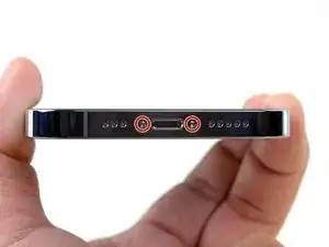 Удалите два винта Pentalobe P2 длиной 6,8 мм на нижнем крае iPhone.