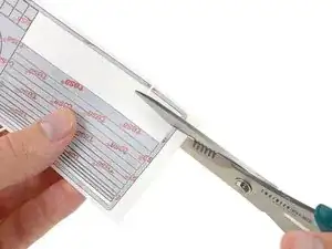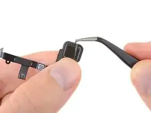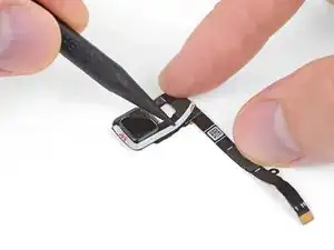 Просуньте приспособление для поддевания под гибкий кабель датчика отпечатка и аккуратно разрежьте клей, фиксирующий его на месте.