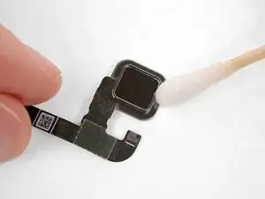 Аккуратно снимите и удалите оставшиеся кусочки старого клея с датчика отпечатка пальца.