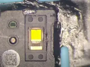 Чип слева используется для хранения данных, тогда как чип справа выполняет функцию проектора. Здесь мы видим тысячи расположенных точек. Отсюда испускается инфракрасный свет.
