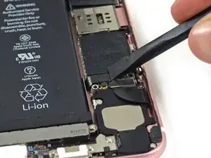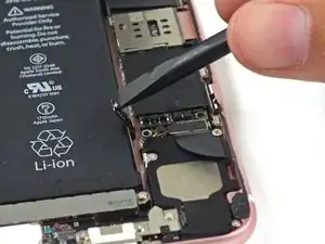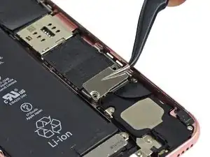 Снимите металлическую скобу разъёма аккумулятора с iPhone.