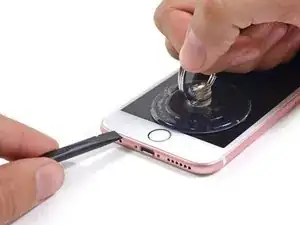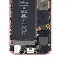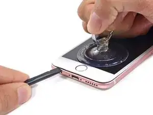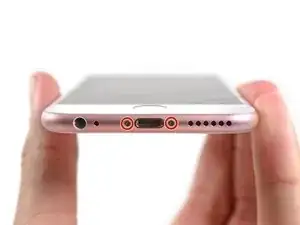Удалите два 3,4 мм винта Pentalobe вокруг разъёма Lightning.