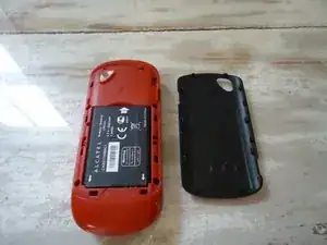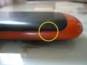 Под ней находится аккумулятор. В красном пластике чуть выше аккумулятора есть желобок.