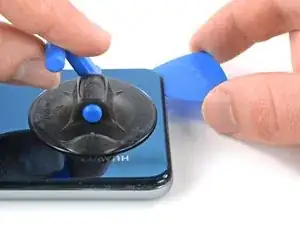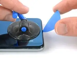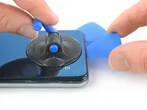 Поднимите заднюю крышку с помощью присоски, чтобы образовалась небольшая щель между крышкой и рамкой.