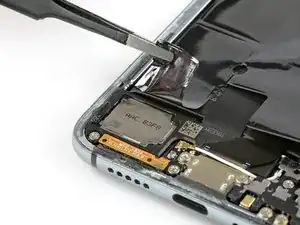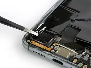 Используйте пинцет, чтобы отодрать черную фольгу в нижней части телефона с динамика.