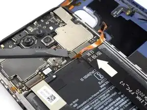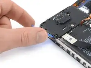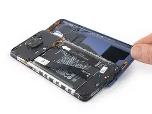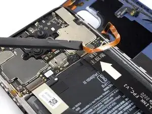 Не пытайтесь полностью отделить сборку телефона от задней крышки — шлейф датчика отпечатков пальцев всё ещё подключён к плате.