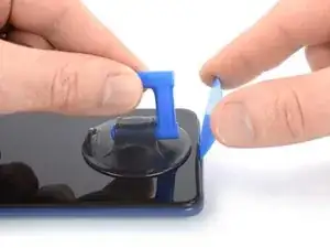 Поднимите сборку телефона с помощью присоски, чтобы создать небольшой зазор между сборкой и задней крышкой.