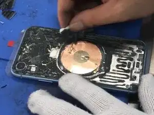 Очистка завершена, теперь мы стараемся сохранить белый клей. Это ключ к восстановлению исходной толщины iPhone.