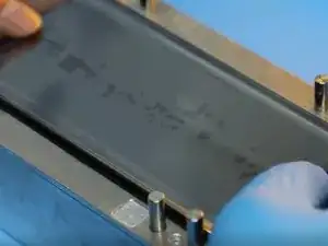 Устанавливаем новый слой OCA на новое сенсорное стекло Samsung Galaxy Note 8. Пока что он не приклеивается к стеклу, так как защитную плёнку OCA снимать не нужно. Вы можете перемещать OCA по поверхности, пока не найдёте нужное положение.