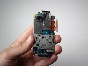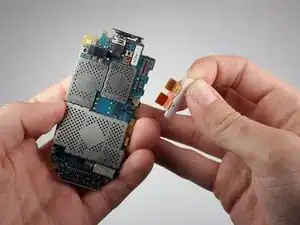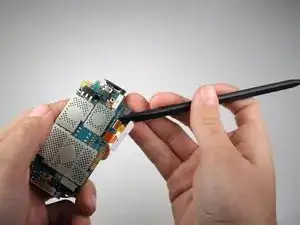 Используйте лопаточку, чтобы приподнять плату из основания телефона.