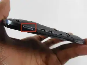 Расположив заднюю камеру в верхней части и направив её к себе, найдите выемку в нижнем правом углу телефона.