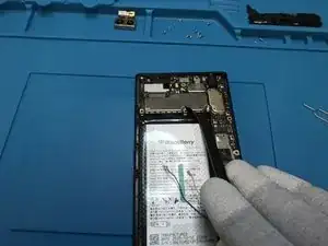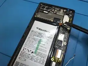 С помощью острого конца пластиковой лопатки поднимите коннектор антенного кабеля с его разъёма на плате.