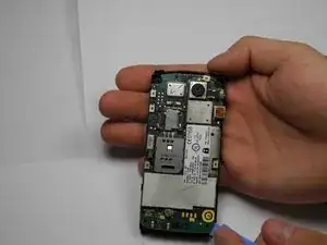 С помощью пластиковой лопатки ослабьте нижнюю крышку, затем снимите нижнюю крышку с телефона.