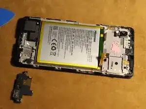 Теперь у нас почти пустой корпус телефона. Остальные детали — камера, динамик, ленточные кабели — должны легко отклеиться. Тем не менее действуйте осторожно!