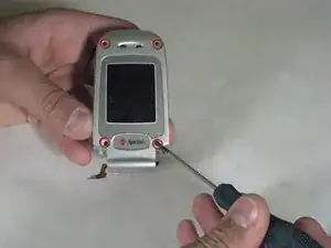 Используйте лопаткy, чтобы отщёлкнуть экран.