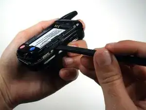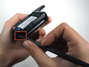 Вставьте лопатку между основанием телефона и аккумулятором.