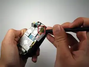 Используйте лопатку, чтобы приподнять плату из основания телефона.