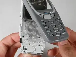 Нажмите двумя большими пальцами вперёд две чёрные кнопки на боковой стороне. Это освободит переднюю панель.