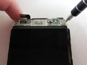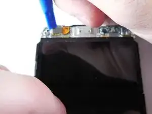 Осторожно подденьте ленточный разъём в верхней части телефона пластиковым инструментом для вскрытия.