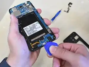 Используйте лопатку, чтобы аккуратно поддеть панель вокруг разъема для зарядки.