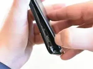 Поверните телефон (см. фото), чтобы обнажить верхний угол устройства.