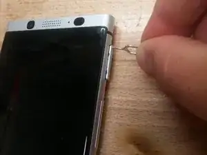 Начало разборки. Экран с логотипом BlackBerry KEYone.