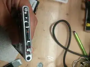 Снимите два винта с крестообразной головкой. Они могут быть скрыты под клеем.