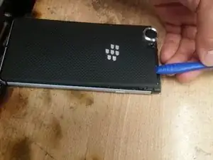 Используйте iSesamo или другой предпочитаемый инструмент для поддевания, чтобы снять пластиковую крышку с BlackBerry.