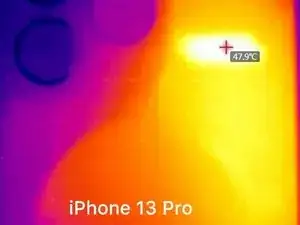 В первую очередь мы провели бенчмарк iPhone 13 Pro и iPhone 12 Pro одновременно. С помощью инфракрасной тепловизионной камеры LINCSEEK обнаружено, что iPhone 13 Pro нагревается сильнее, чем iPhone 12 Pro. iPhone 13 Pro может достигать максимальной температуры около 48 °C, тогда как максимальная температура iPhone 12 Pro составляет около 40 °C.